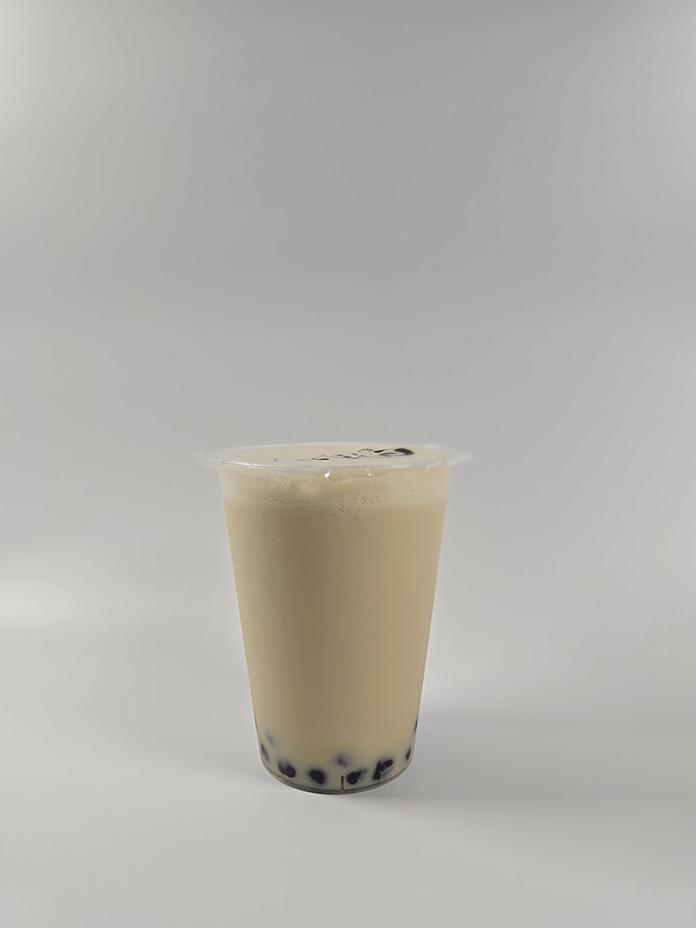 Банан, молоко, жасминовый чай, карамельный сироп, тапиока, лед.