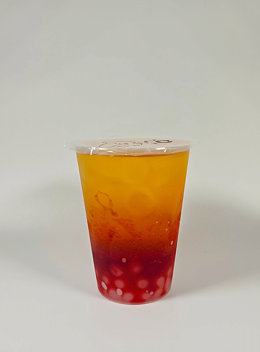 Чай пандан, малиновый топпинг, грушевый сироп, тапиока, лед.